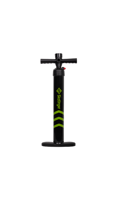 Robuste und effiziente Handpumpe zum Aufpumpen von SUP-Boards. Sie verfügt über einen ergonomischen Griff für komfortable Nutzung, ein großes Manometer für präzises Aufpumpen sowie ein Doppelhub-System für schnelleres Pumpen. Kompatibel mit allen Skatinger SUP-Boards und anderen aufblasbaren Boards mit Standardventilen.