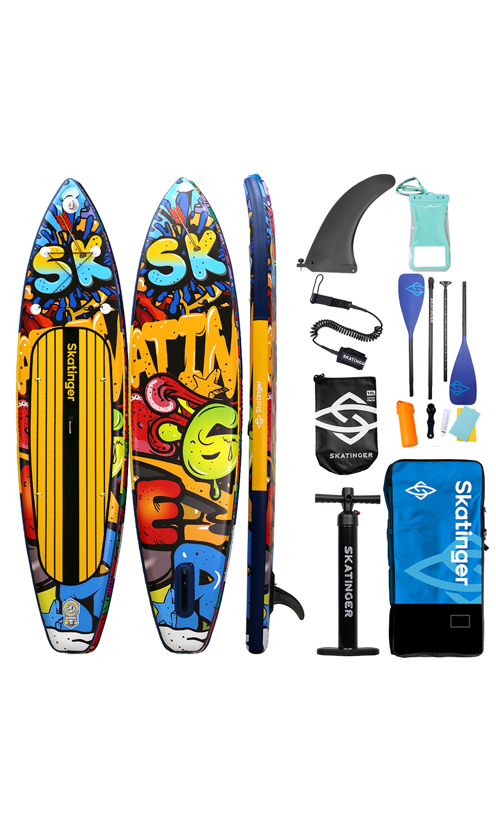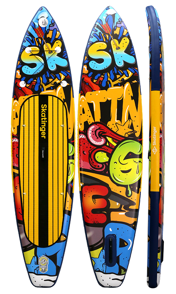 Das Graffiti Yellow SUP Board vereint urbanes Auftreten mit hochwertiger Touring-Leistung. Mit einer Länge von 350,5 cm und einer Breite von 81 cm bietet es eine hervorragende Balance aus Geschwindigkeit und Stabilität – ideal für Paddler, die auffallen möchten, während sie entspannt über Buchten, Flüsse oder Seen gleiten. Inspiriert von lebendigen Street-Murals und Pop-Art-Elementen, richtet sich dieses Board an alle, die Farbe, Bewegung und Freiheit leben.