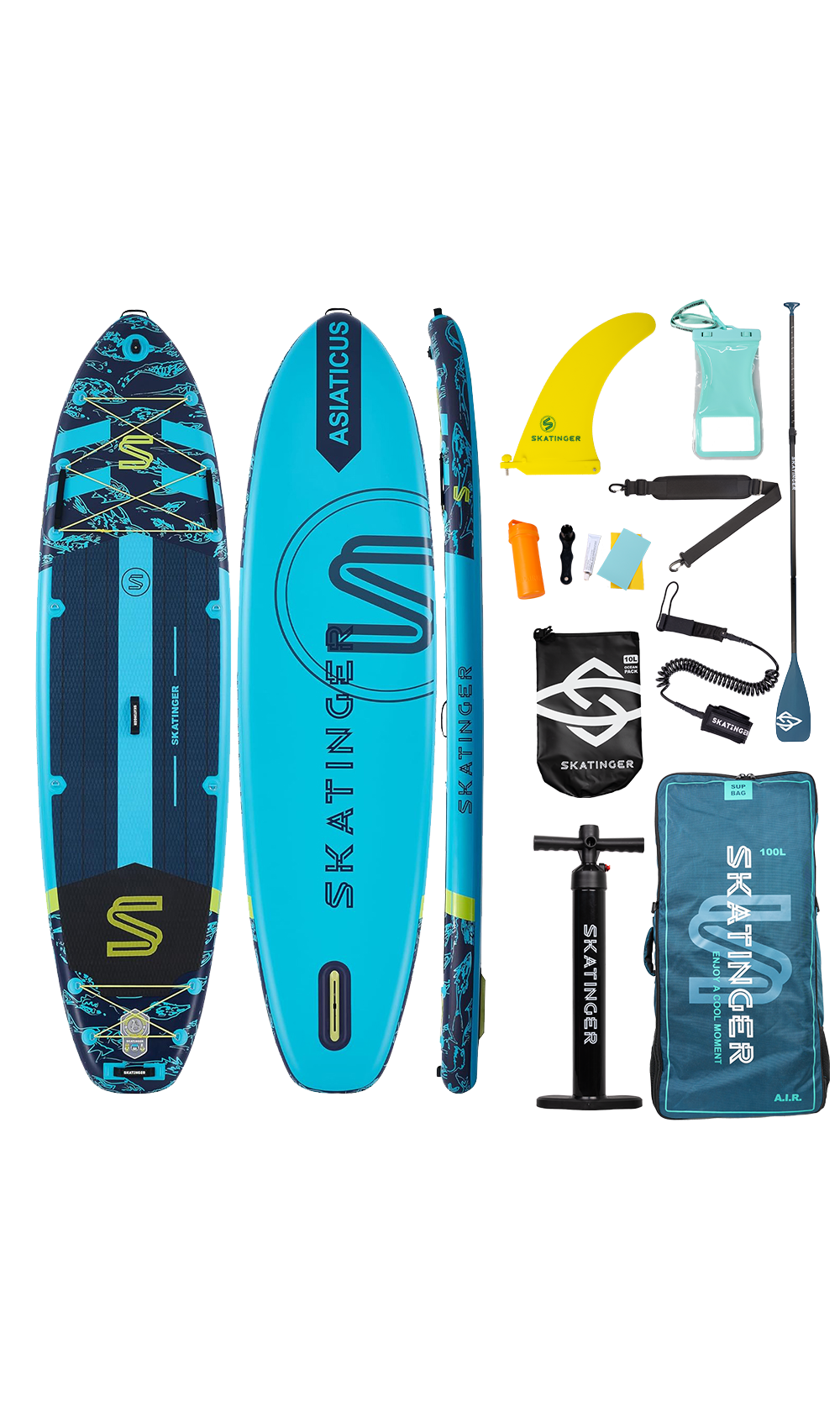 Das aufblasbare SUP Board Asiaticus von Skatinger überträgt die Geschwindigkeit und Eleganz der Meereswelt in ein dynamisches und leistungsstarkes SUP-Modell. Mit ausgewogenen Maßen von 350,5 cm Länge und 89 cm Breite bietet es hervorragende Wendigkeit und zuverlässige Kontrolle – ideal für Freizeitpaddler aller Erfahrungsstufen, auch für schwerere Nutzer.