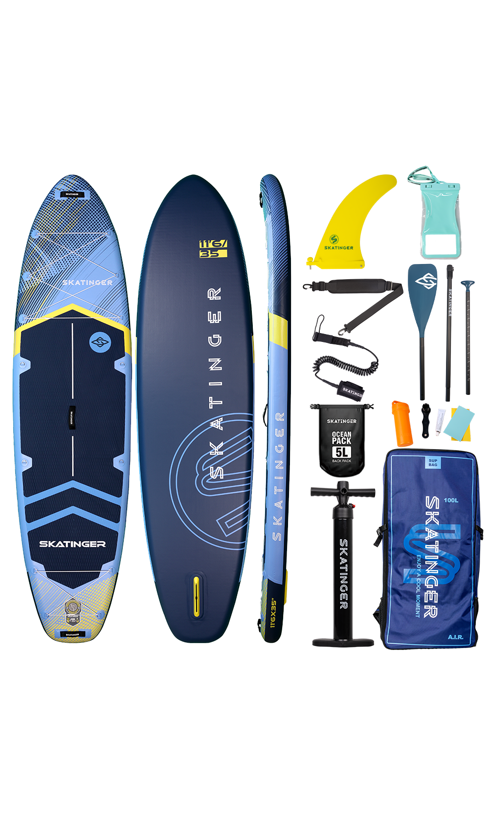 Das Sky Blue SUP Board von Skatinger richtet sich an alle, die geschmeidige Performance mit einer klaren visuellen Linie verbinden möchten. Dank verlängerter Abmessungen und hydrodynamischer Silhouette bietet es Balance, Komfort und Präzision bei jedem Paddelschlag – ideal für Fitness, SUP-Yoga und ruhige Touren.