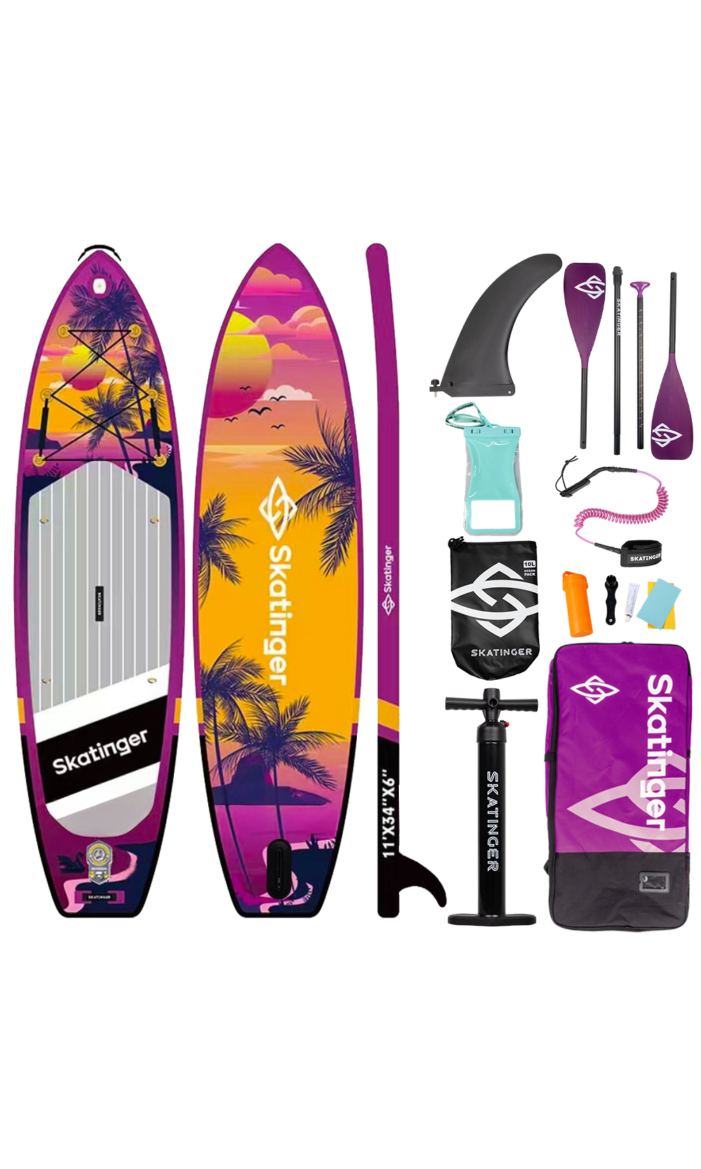 Sunrise fängt die Energie der frühen Morgenstunden, die Freiheit des Meeres und die Kraft tropischer Wellen ein. Das markante Design mit Palmen und leuchtendem Sonnenuntergang vermittelt ein Gefühl von Abenteuer und entspanntem Küstenpaddeln. Dieses Board ist für alle gedacht, die Spaß, persönlichen Ausdruck und zuverlässige Leistung suchen – ob allein oder in Begleitung.