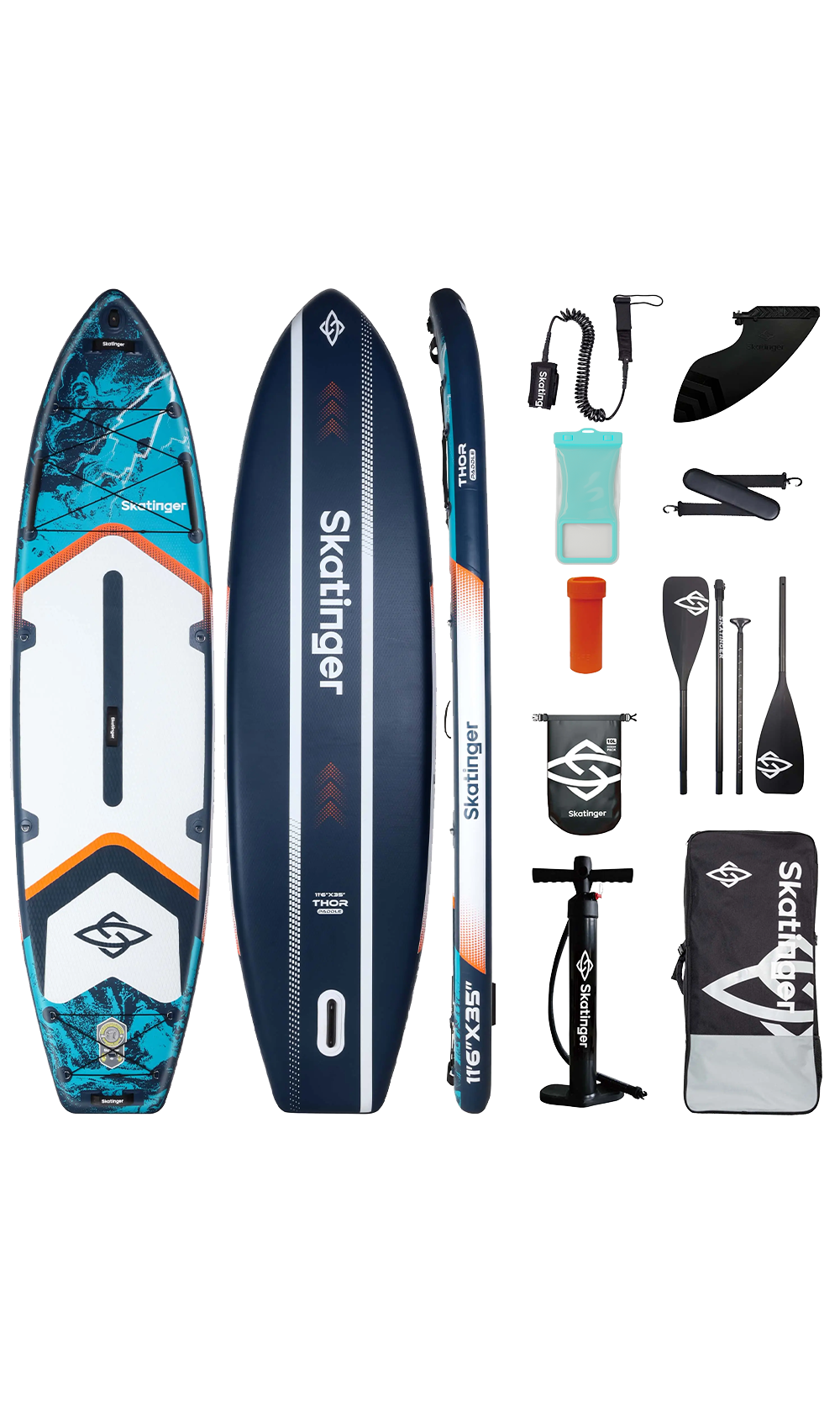 Als Teil der leichteren Skatinger Boards kombiniert Thor Blue beeindruckende Größe mit überraschend einfacher Handhabung. Die leichte Konstruktion erleichtert Transport und Aufbau erheblich, während die verstärkte Drop-Stitch-Struktur das Board nach dem Aufpumpen fest und stabil hält. Mit etwa 350 cm Länge und 89 cm Breite bietet es hervorragendes Gleiten, stabiles Tracking und zuverlässige Balance für Paddler aller Erfahrungsstufen.