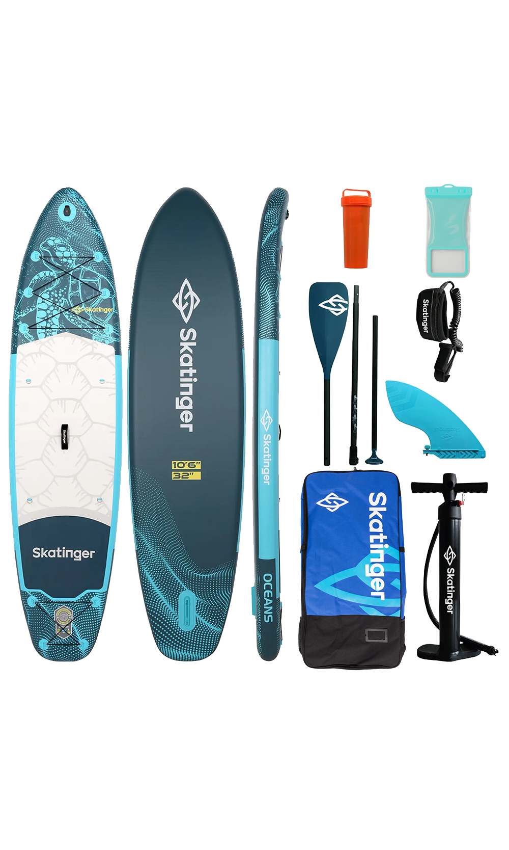 Das aufblasbare Skatinger Turtle Paddle Board vereint Stabilität, sanftes Gleiten und ein markantes, vom Ozean inspiriertes Design. Inspiriert von der ruhigen Stärke der Meeresschildkröte wurde dieses Board für Paddler entwickelt, die entspanntes Cruisen, das Entdecken neuer Gewässer und Zeit in der Natur mit Sicherheit und Stil genießen.