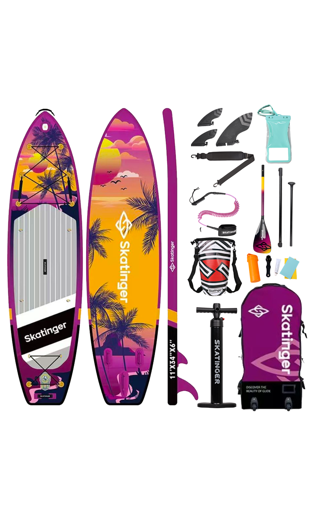 Sunrise fängt die Energie der frühen Morgenstunden, die Freiheit des Meeres und die Kraft tropischer Wellen ein. Das markante Design mit Palmen und leuchtendem Sonnenuntergang vermittelt ein Gefühl von Abenteuer und entspanntem Küstenpaddeln. Dieses Board ist für alle gedacht, die Spaß, Selbstausdruck und zuverlässige Performance suchen – ob allein oder in Begleitung.